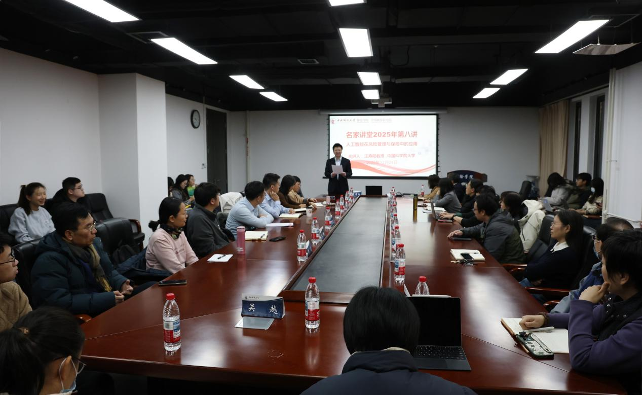 12月24日,保险学院、中国精算研究院“名家讲堂”2025年第八讲在沙河校区开讲。发展中国家科学院院士、中国科学院大学教授汪寿阳作题为《人工智能时代的几个风险问题》的学术报告。讲座由保险学院、中国精算研究院院长周桦主持。保险学院党委理论学习中心组成员以及校内外师生参加讲座,共同探讨人工智能技术快速发展背景下,保险与风险管理领域面临的前沿议题。