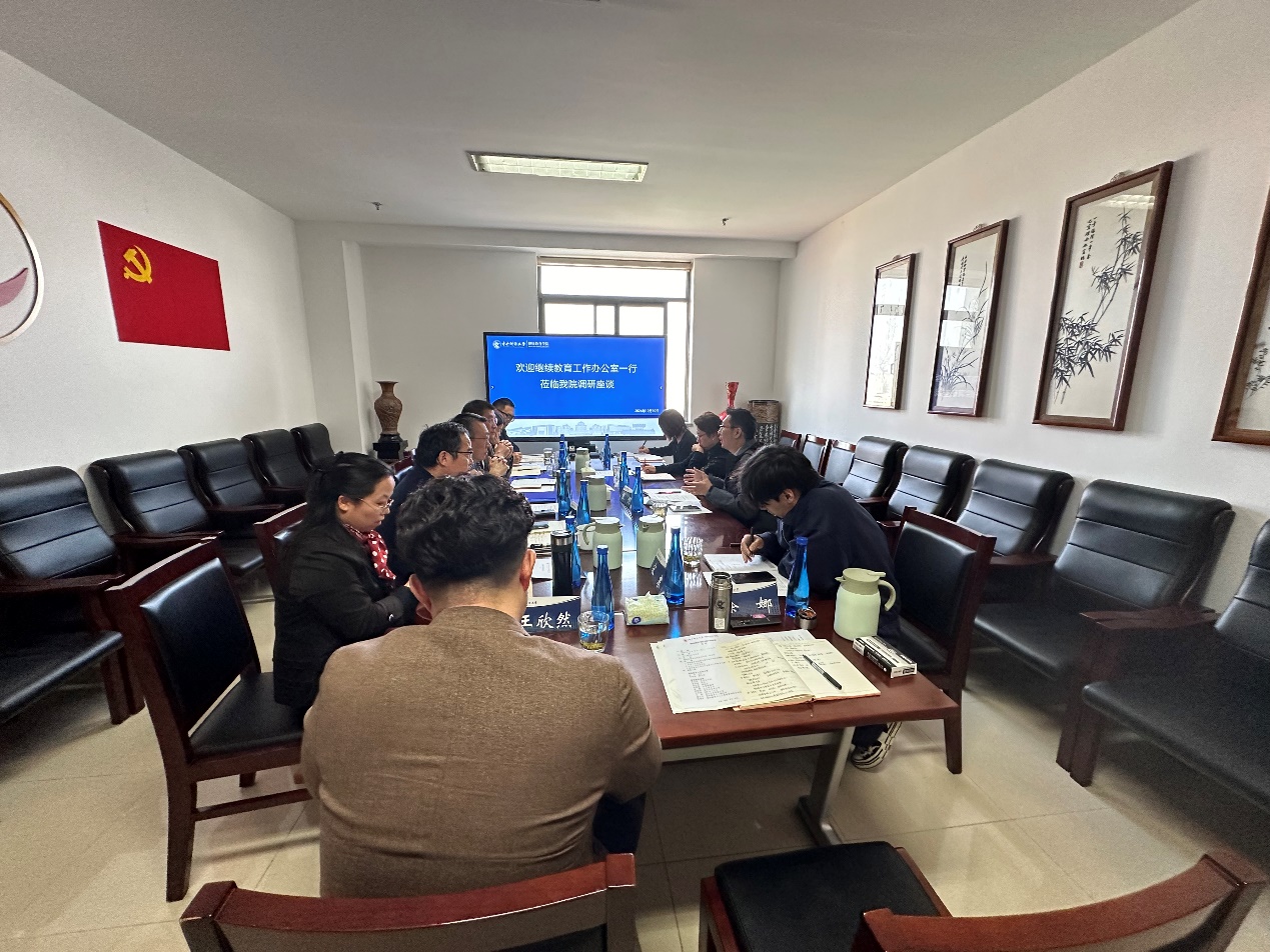 10月30日上午,继续教育工作办公室主任张剑、副主任李杨波一行前往继续教育学院调研交流。继续教育学院院长蔡如海、副院长季传武及相关部门负责人参加座谈。会议由继续教育学院党总支书记李汉军主持。蔡如海院长对张剑主任一行的到来表示热烈欢迎,并从学院基本情况及业务发展现状、继续教育发展思路与成效、当前发展面临的制约因素,以及学院具有增长潜力的业务板块等四个方面对学院进行了详细介绍。他表示,学院始终坚持“强...