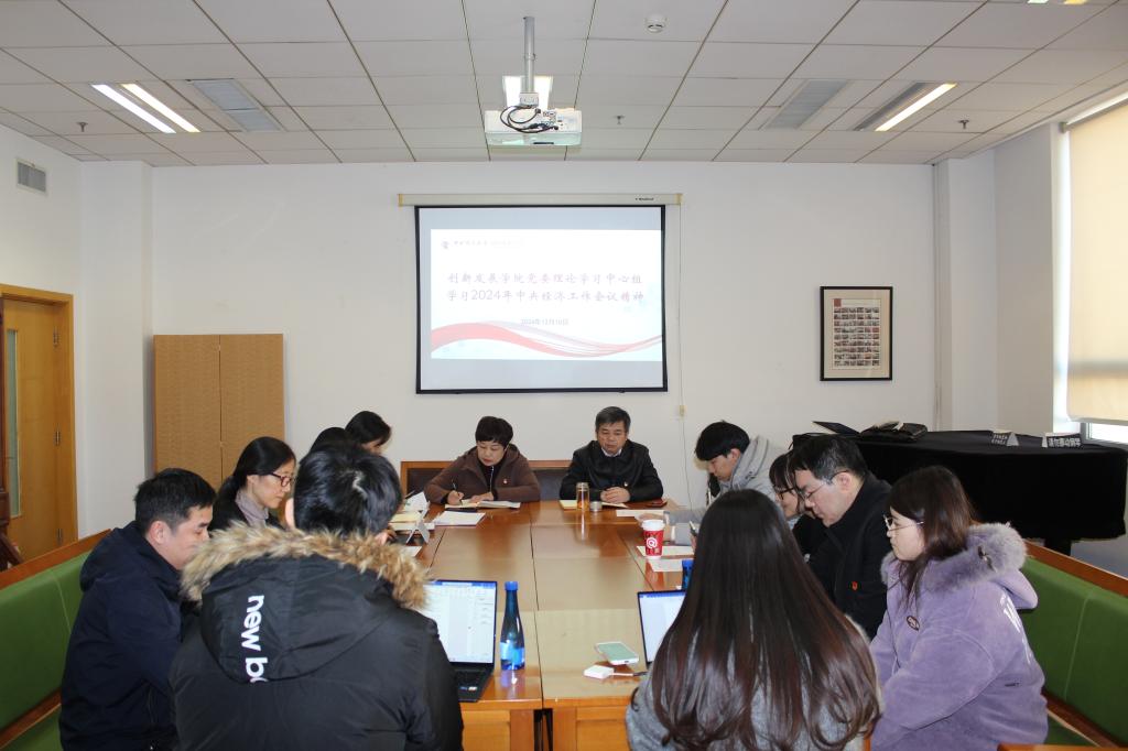 创新发展学院党委理论学习中心组专题学习2024年中央经济工作会议精神 2024年12月18日,创新发展学院党委理论学习中心组在学术会堂712专题学习2024年中央经济工作会议精神。学院党委常务副书记王颖主持会议,学院党委理论学习中心组成员参加学习。集体学习王颖书记指出,中央经济工作会议12月11日至12日在北京举行,习近平总书记出席并发表重要讲话,总结2024年经济工作,分析当前经济形势,部署2025年经济工作。李强作总结讲话,围绕贯彻落实习近平总书记重要讲话精神,就做好明年经济工作提出具...