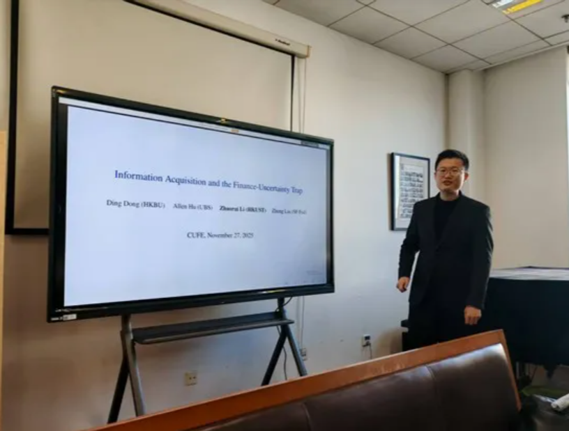 2025年11月27日中午,世界杯直播创新发展学院学术讲座在学术会堂712举行。受中国经济与管理研究院的邀请,香港科技大学李兆睿博士后举行题为“Information Acquisition and the Finance-Uncertainty Trap”(信息获取与金融-不确定性陷阱)的学术讲座。讲座由何其春教授主持。创新发展学院多位老师、博士参加了讲座。