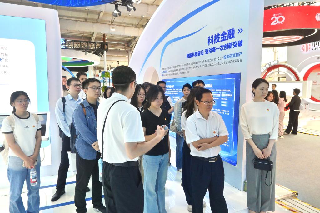 学院师生在讲解员的引导下,参观了首钢园6号馆的建信基金展位,了解了建信基金自成立以来在科技金融、绿色金融、普惠金融、养老金融、数字金融等“五篇大文章”之上取得的成就,进一步明晰了金融行业的前沿动态和发展趋势。