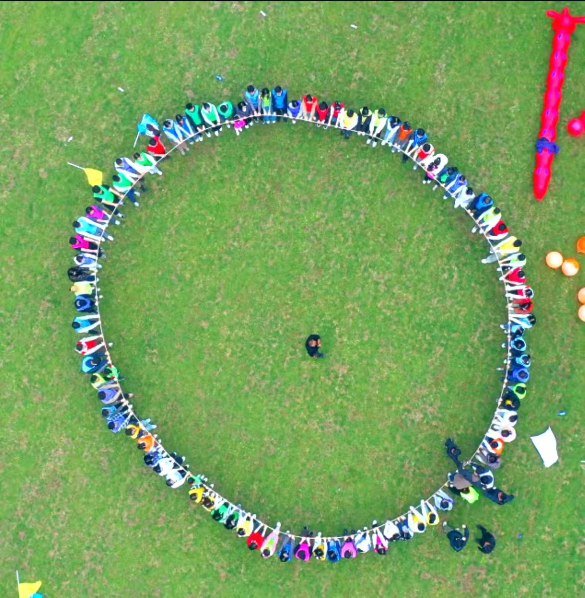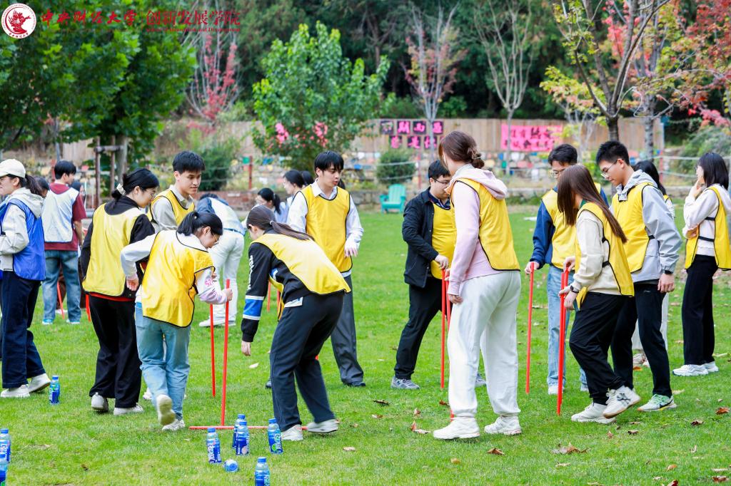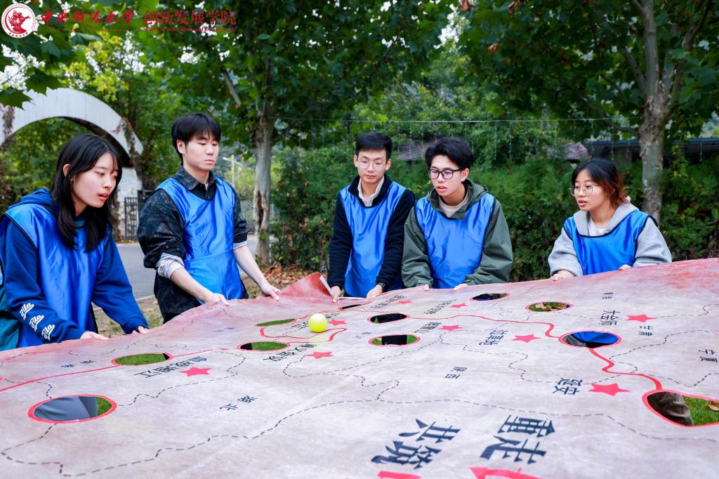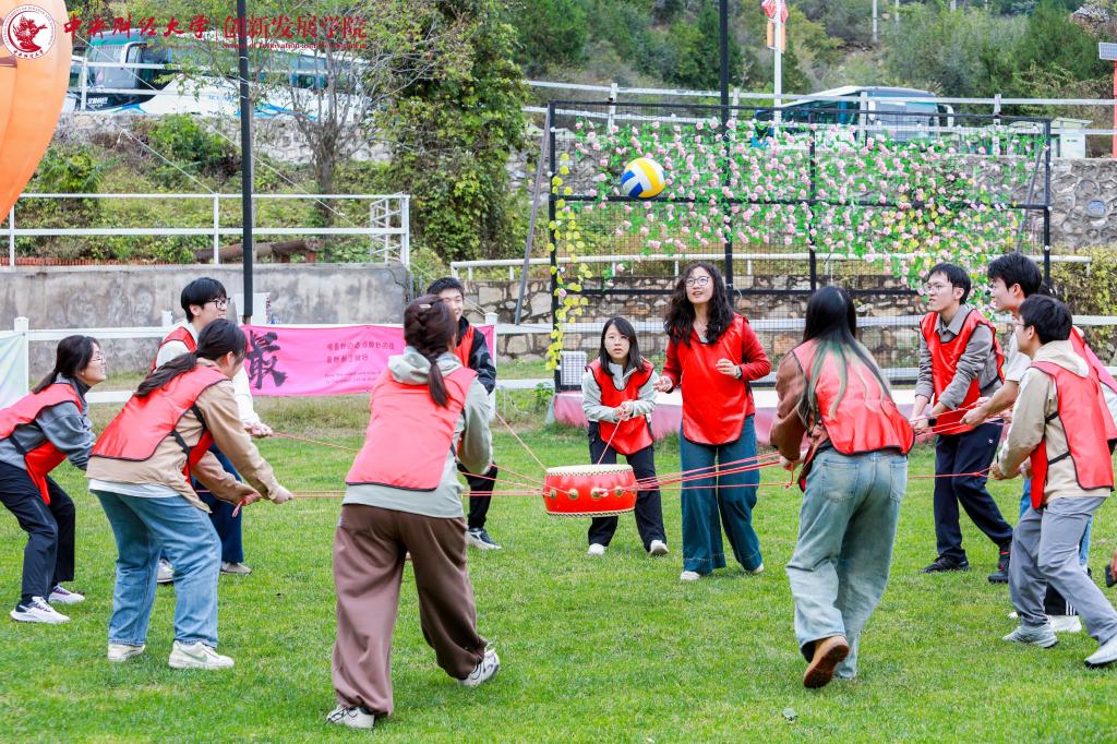 团队活动以红色主题素质拓展的形式开展,师生们共同组成十支队伍,每支队伍都热情高涨。在“重走长征路”“一鼓作气”“红旗接力”“星火传承”“胜利会师”“齐心协力”等项目中,参赛队员们热情饱满,赛场上口号声此起彼伏,各队都在努力寻找节奏,奋力拼搏,争取最佳成绩。全体师生共同参与动力绳圈项目,大家心往一处想、劲往一处使,齐心协力摇曳圈绳。部分同学在他人协助下踏上圈绳行走,同学们之间的情谊愈发深厚,也感受到了肩上责任的重量。