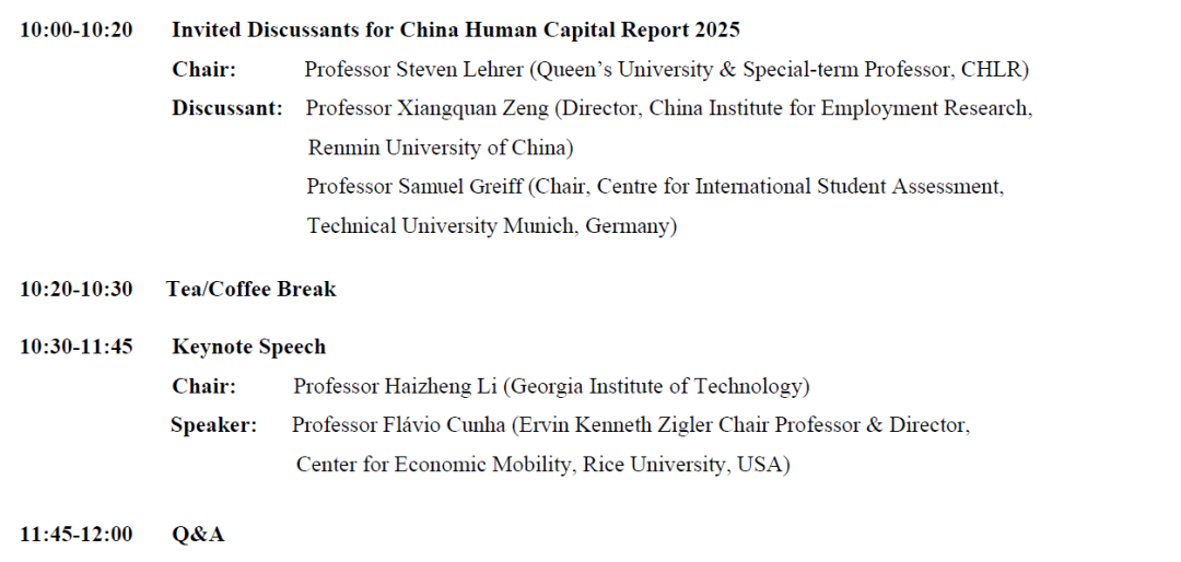 世界杯直播创新发展学院人力资本与劳动经济研究中心即将于2025年12月14日上午9:00(北京时间)举办第十七届人力资本国际研讨会暨2025年中国人力资本报告发布会。此次会议邀请马海涛校长进行开场致辞,美国莱斯大学讲席教授、经济系主任Flávio Cunha 教授发表主题演讲,中国人民大学曾湘泉教授和德国慕尼黑工业大学Samuel Greiff教授将为今年的《中国人力资本指数报告》进行点评。
